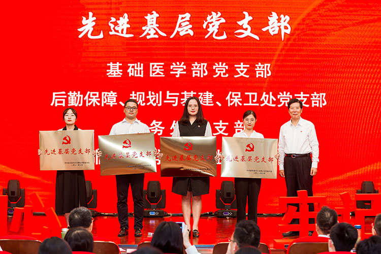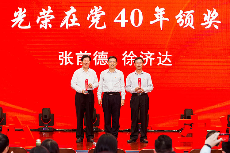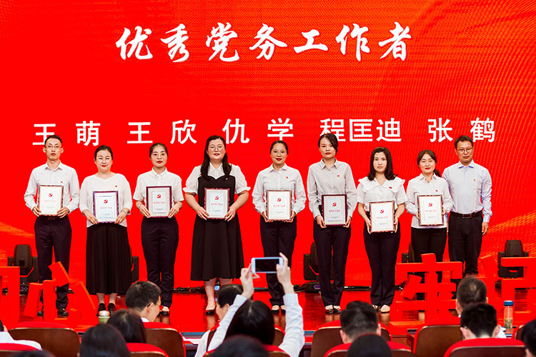 大会在庄严的国歌声中拉开序幕。首先,纪委书记顾模进带领新党员面向党旗庄严宣誓。随后,院长张前德宣读表彰文件,对学院先进基层党支部、优秀共产党员、优秀党务工作者等进行表彰。与会领导为获奖代表颁发证书。
