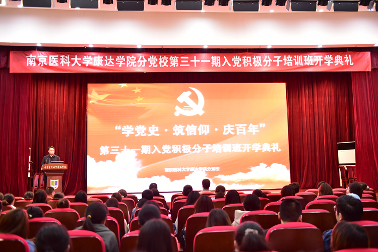 4月21日下午,我院分党校“学党史·筑信仰·庆百年”第三十一期入党积极分子培训班开学典礼在医政楼报告厅举行。院领导张鸿来、王磊、顾模进,学生工作处负责人,组织宣传部全体人员,全体辅导员,本期307名学员参加了开学典礼。开学典礼由党委副书记、副院长王磊主持。