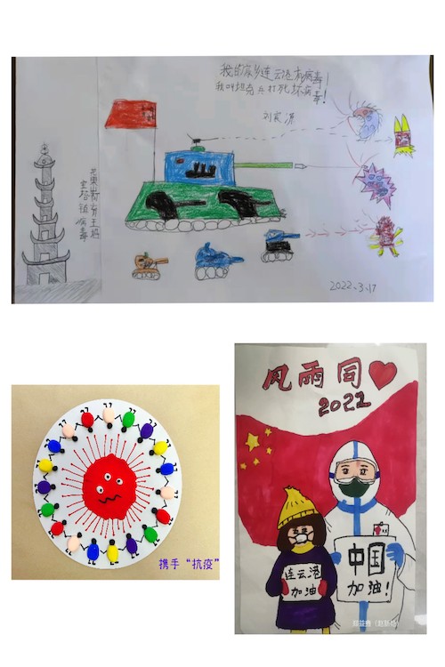 17名党员,背后是17个家庭,大多数人的孩子都还是学龄前儿童,最小的仅9个月。支部积极引导祖国的下一代们也在这场战役中学习、成长,开展了“团结‘艺’心·‘童’心抗疫”线上亲子活动。小可爱们在学习了新冠肺炎公众预防指南系列动画后,通过绘画、视频、手工等形式积极展示了自己对这场战役的理解、对爸爸妈妈的支持、对春暖疫散后家人团聚的期待,也让忙于一线工作的教职工们无比欣慰,更加增强了战胜疫情的信心。