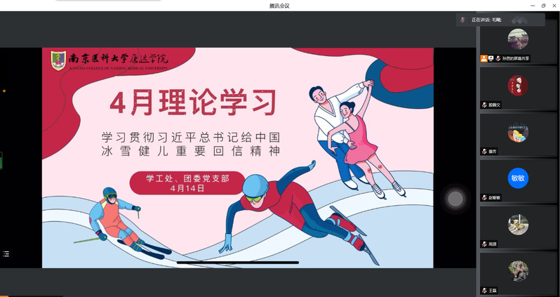 4月15日下午,学工处、团委党支部线上开展“学习贯彻习近平总书记给中国冰雪健儿重要回信精神”主题党课。