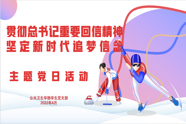 2022年4月16日,公共卫生学部学生党支部线上举办 “贯彻总书记重要回信精神,坚定新时代追梦信念”主题党日活动。本次活动党支部书记赵晨曦主持,学部全体党员及入党积极分子参加。