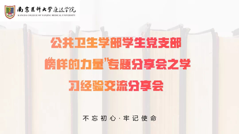 5月23日晚,公共卫生学部学生党支部以线上形式成功举办“榜样的力量”专题分享会。获得过国家奖学金、江苏省优秀毕业生的2017级预防1班刘雨馨同学和获得过江苏省优秀学生干部、江苏省优秀毕业生的2017级临床1班孙思慎同学作为分享嘉宾,向同学们分享学习、科研和成长经历,公共卫生学部全体党员、入党积极分子参会。