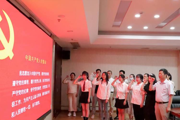 在毕业典礼上,支部全体师生共同观看支部准备的祝福视频,优秀毕业生代表刘钰婷同学代表全体毕业生向所有老师致以最崇高的谢意,并表示必将不负韶华、刻苦努力,书写出康达学子的人生华章。接着,陈家应主任带领师生党员重温入党誓词,要求毕业生党员牢记誓言、守初心,不负党和人民。董伟康主任深情致辞寄语毕业生,希望大家能够谨记校训、恪守本心,做康达学院的好青年;热爱祖国、遵纪守法,做党和国家的好青年。最后,陈家应主任与董伟康主任一起为毕业生分发建党周年蛋糕,与毕业生在欢送会中倾情交流。