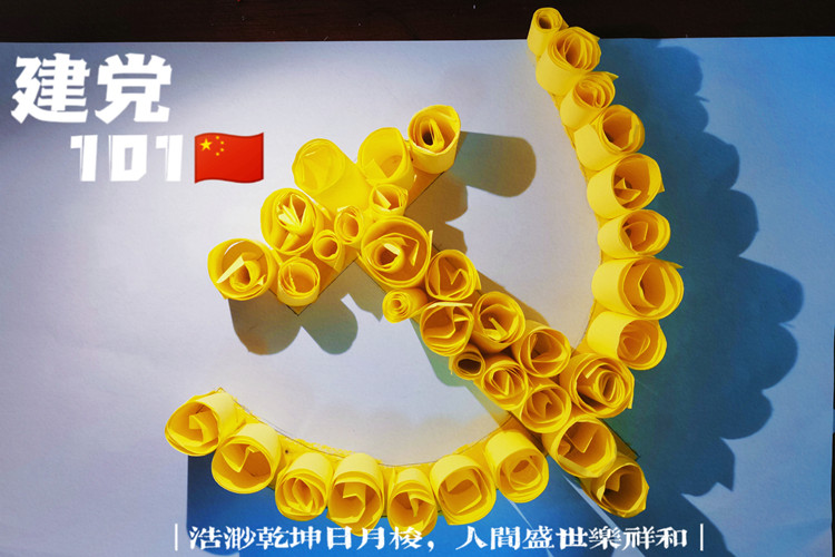 活动期间,同学们积极参加,纷纷在家运用衍纸并融入剪纸元素编折党建衍纸手工作品,透过衍纸这种艺术表现形式,让参与的同学体会到传统艺术的非凡魅力,也丰富了同学们的精神文化生活。这些由无数张彩色碎纸拼接卷曲而成的党徽,寓意党日积月累的百年荣誉,蕴含着同学们对党地深刻祝福。