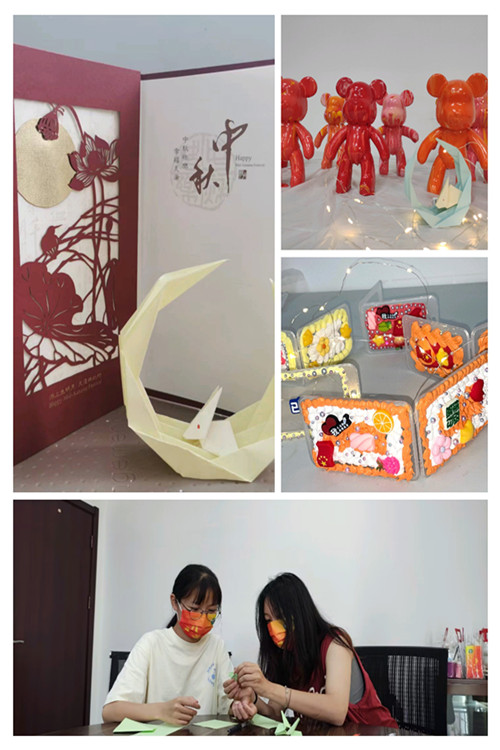 丹桂香,明月照,中秋佳节来临之际,同学们制作的“玉兔拜月”、“莲花河灯”等多种精巧的折纸作品让“教师节+中秋节”两节相遇更具传统浪漫韵味。此外,师生共同合作完成的“流体熊”与DIY卡套更增进了师生情谊。