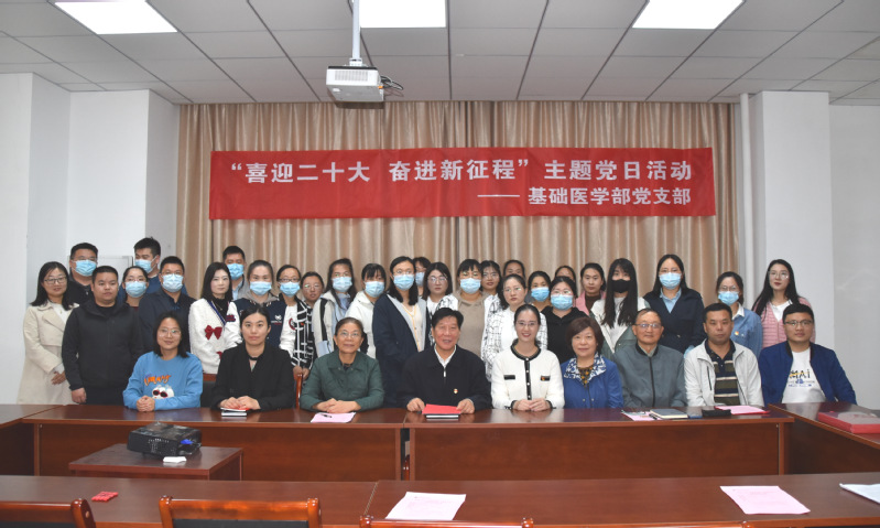 为了铭记党的百年光辉历程,重温“入党誓词”勿忘“入党初心”,以饱满的热情和信心迎接党的二十大胜利召开,10月12日,基础医学部党支部成功举办“喜迎二十大,奋进新征程”主题党日活动。院长张前德、基础医学部主任吴小玲,支部全体党员以及学部全体教师参加主题党日活动。本次活动由基础医学部党支部副书记周婷婷老师主持。