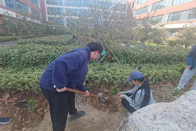活动现场,党员教师带着学生们按照每棵树种的尺寸和树间距要求进行种植,注重泥土的填覆,做到植树规范,以确保植树的质量和成活率。经过大家的共同努力,超额完成了预期任务。