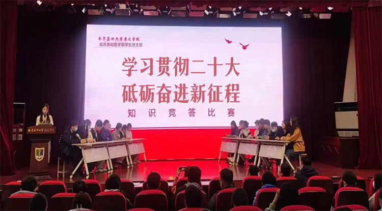 为深入学习贯彻党的二十大精神,营造真学、深学、细学的浓厚氛围,近日,临床、基础医学部学生党支部在医政楼报告厅开展“学习贯彻二十大,砥砺奋进新征程”知识竞答活动。