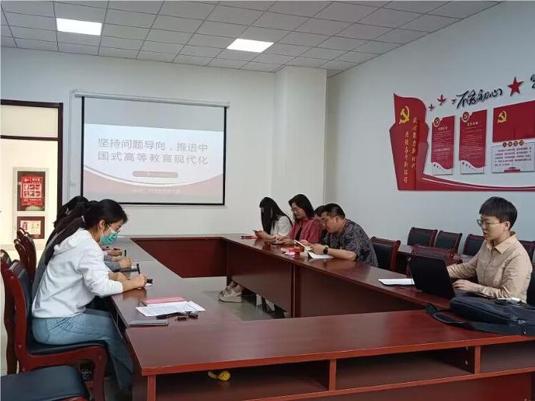 党支部书记刘玉同志以“坚持问题导向,推进中国式高等教育现代化”为主题,首先介绍了高等教育现代化的背景及中国式高等教育现代化的内涵,接下来就如何进一步加强学风建设、如何进一步提高教育教学质量、如何评价德育工作的落实效果等日常教学中常见的问题与全体与会教师展开热烈讨论。
