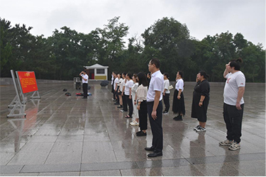 在庄严肃穆的烈士陵园中,全体党员整齐列队于烈士纪念碑前,向革命先烈默哀致敬,并瞻仰革命烈士纪念碑,表达对革命先烈的无限追思和崇高敬意,在缅怀先烈中承续奋斗之志。随后,全体党员在党支部书记王胜洁同志带领下,面对鲜红的党旗高举右手,一起重温入党誓词。铮铮誓言表达了大家对党的无限忠诚和热爱,传递了听党话、跟党走的坚定决心。
