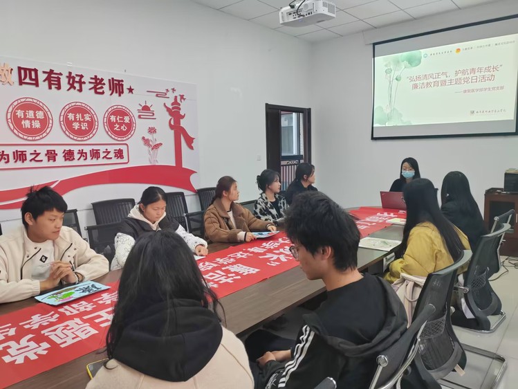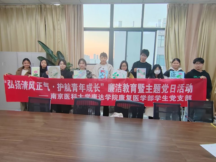 为加强党员和团员的廉洁意识,促进党风廉政和校园廉洁文化建设,康复医学部学生党支部于11月27日开展“弘扬清风正气·护航青年成长”廉洁教育暨主题党日活动。活动分为专题教育会和廉洁文化作品制作两部分,支部党员、积极分子和学生干部代表参与,会议由支部书记管琪琪主讲。