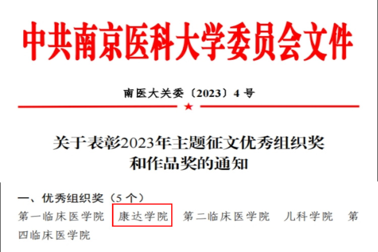 近日,在南京医科大学关工委组织的2023年“劳动最光荣 奋斗最幸福”和“海洋梦 兴中华”主题征文活动中,我院关工委荣获优秀组织奖;2篇作品荣获一等奖,8篇作品荣获二等奖,7篇作品荣获三等奖。
