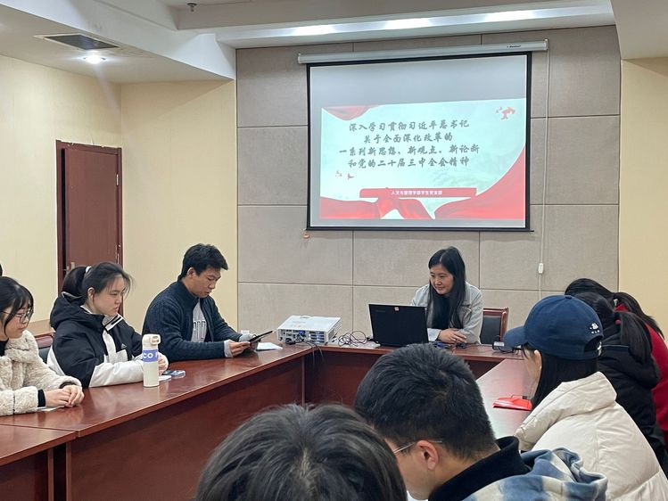 12月11日,人文与管理学部党支部开展党的二十届三中全会精神专题学习会。支部书记王美玲主持会议,支部全体党员参与学习。
