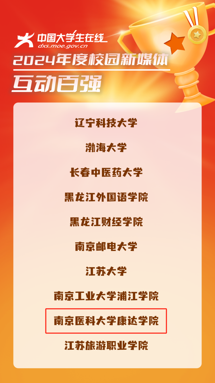 12月26日,教育部中国大学生在线公布2024年度校园新媒体表彰名单,我院获“2024年度校园新媒体互动百强”荣誉称号。