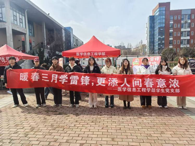 阳春三月,万物复苏。3月5日,医学信息工程学部学生党支部于树人广场开展了“暖春三月学雷锋,更添人间春意浓”主题党日活动,支部党员与积极分子踊跃参与活动,以实际行动践行新时代雷锋精神。