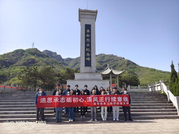为深入了解清明节的历史渊源和文化内涵,增强青年教师及学生对民族文化的认同感和自豪感,4月13日,医学信息工程学部党支部联合学生党支部开展“追思承志砺初心,清风正行续章规”活动。本次活动由支部书记张蓓蓓老师主持,支部师生代表参加。