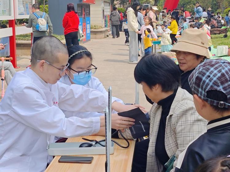 4月19日,临床、基础医学部学生党支部联合学生工作处、团委党支部走进玉兰社区,开展“社区有我,青春报道”社区志愿服务活动。本次活动涵盖血压测量、急救技能培训、八段锦教学等多项内容,吸引了百余名居民热情参与。