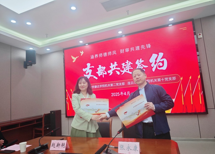 为深入学习贯彻习近平新时代中国特色社会主义思想,落实立德树人根本任务,进一步推动党建与业务深度融合,4月18日上午我院机关第二党支部与连云港师范学院机关第十党支部(财务审计支部)签署共建协议,双方将以“资源共享、优势互补、协同发展”为原则,构建党建与业务深度融合的长效机制,通过常态化互学互鉴,全面提升党员队伍的政治素养与业务能力。