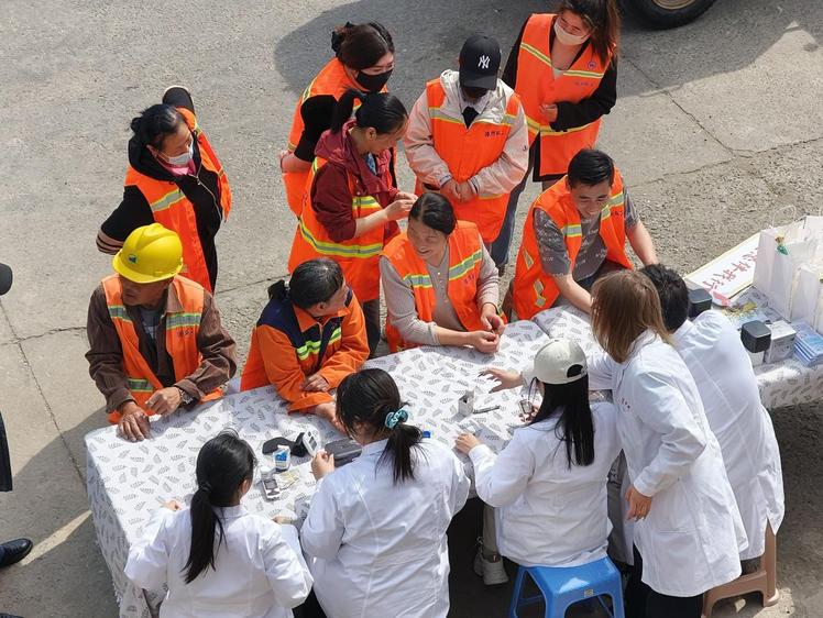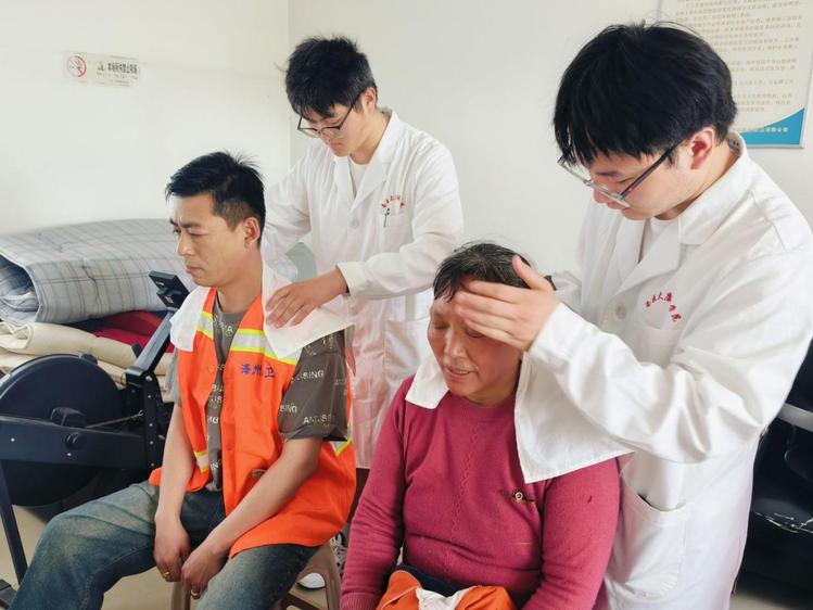 活动现场,康复学子们以专业所长践行医者仁心。血压测量区,学生们细致记录每位工人的健康数据;推拿按摩区,灵巧的双手为疲惫的身躯带来舒缓;实操教学环节,工人们跟随学生练习气血功拳操,一招一式间尽显活力。急救知识科普环节更以生动演示,为工人们的日常安全保驾护航。活动尾声,一份份饱含心意的礼品,传递着对劳动者最诚挚的敬意。