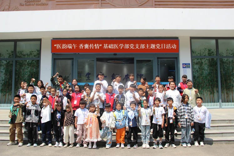 5月24日上午,基础医学部党支部在8号楼201、203开展了“医韵端午·香囊传情”主题党日活动。基础医学部全体党员教师、学生志愿者以及来自海州区滨河小学、宁海中心小学等校的师生共同参与。