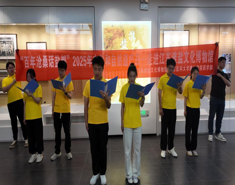 6月12日上午,在2025年文化和自然遗产日到来之际,药学部学生党支部师生携手江苏淮盐文化博物馆开展“百年沧桑话盐都·传承文脉启新程”主题活动。江苏淮盐文化博物馆及连云港市开发区猴嘴街道相关负责人、药学部主任徐群为、支部师生党员代表参与本次活动。
