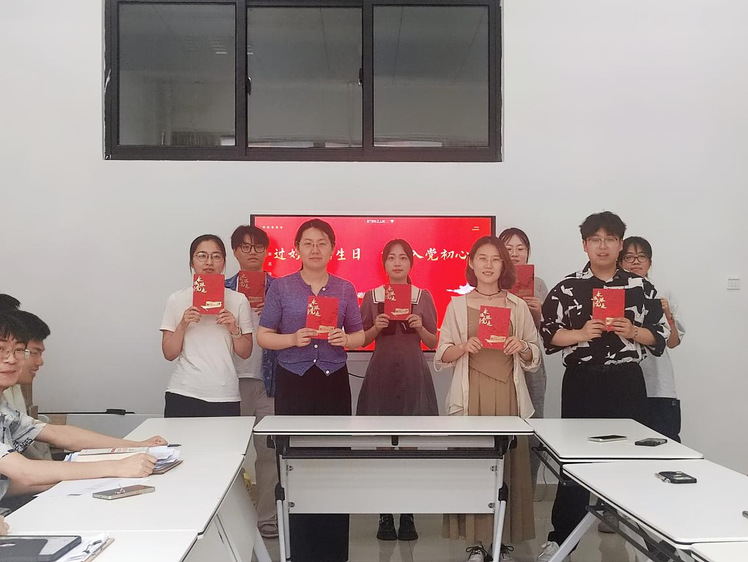 活动伊始,全体党员在党支部书记陶嫄的领誓下,面向党旗重温入党誓词,唤醒内心深处的初心与使命。随后,支部教师谷昊泽宣读了“政治生日”党员名单,支部书记陶嫄为相关党员赠送精心准备的政治生日贺卡,并向党员们致以热烈的祝贺和诚挚的祝福。