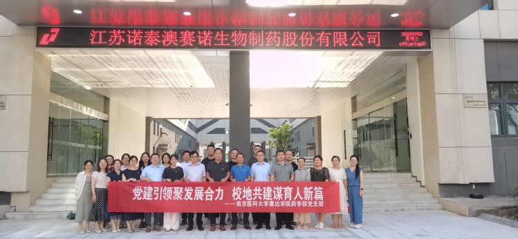 7月2日下午,我院药学部党支部联合连云港经济技术开发区经济发展局党支部、江苏诺泰澳赛诺生物制药股份有限公司党支部,在中华药港共同开展校政企联合党建活动。副院长张怀平、药学部主任徐群为及药学部党支部党员参加了活动。