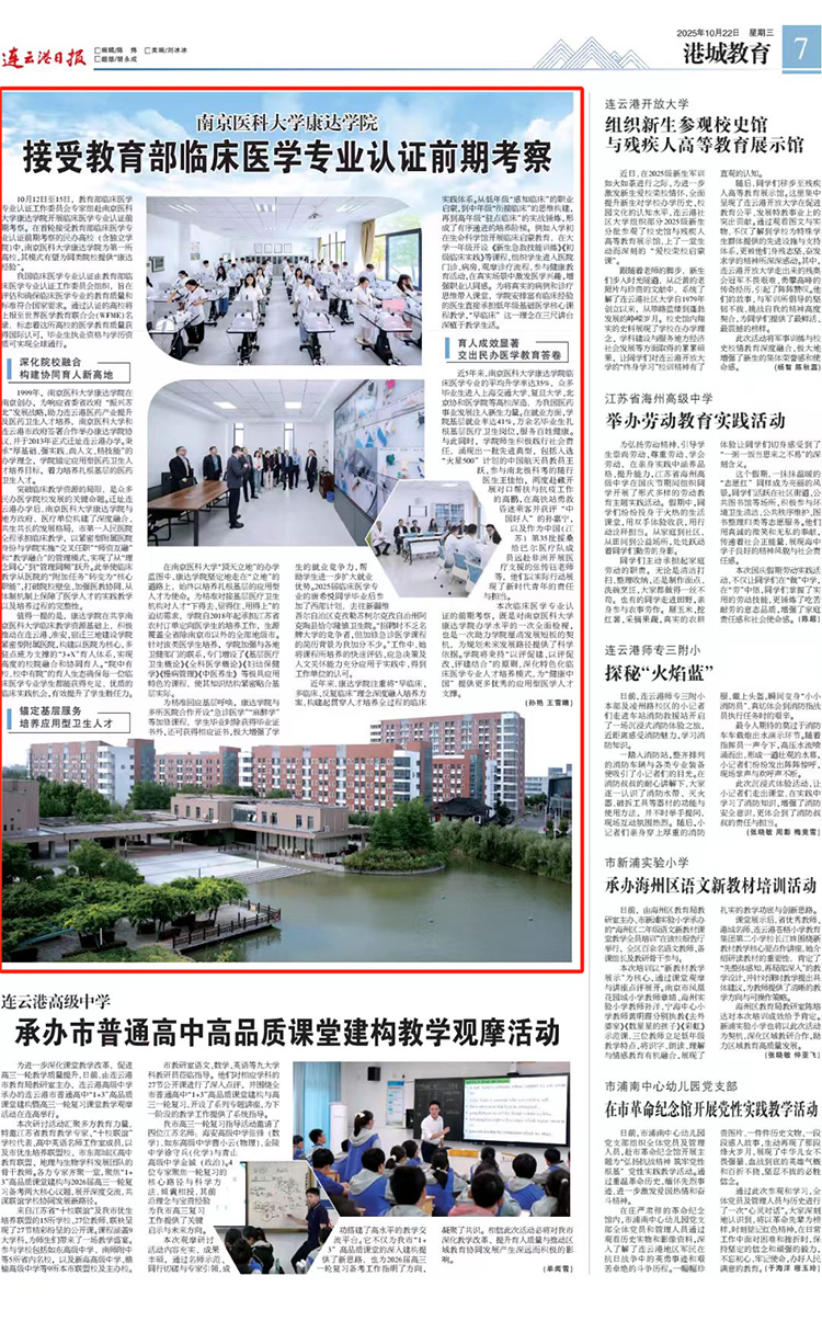 [连云港日报]南京医科大学康达学院 接受教育部临床医学专业认证前期考察