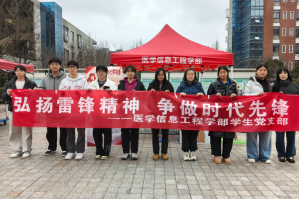 为深入贯彻落实习近平总书记关于弘扬雷锋精神的重要指示,深刻把握雷锋精神的时代内涵,3月5日,医学信息工程学部学生党支部在树人广场开展了“弘扬雷锋精神,争做时代先锋”主题党日活动。本次活动由党支部书记孟瑀主持,支部全体成员参加。