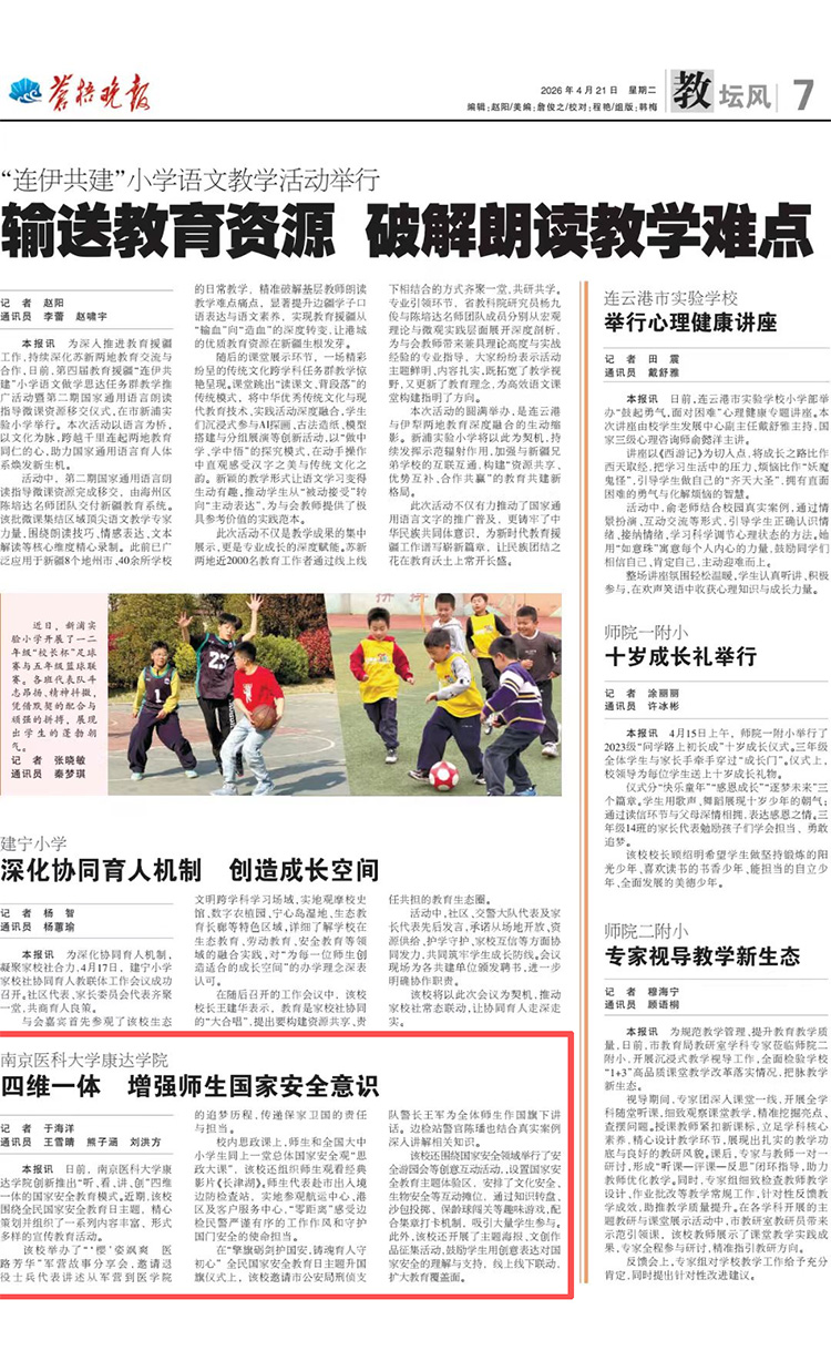 [苍梧晚报]南京医科大学康达学院 四维一体 增强师生国家安全意识