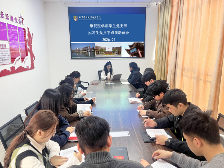 为深入贯彻落实全面从严治党要求,强化学生党员教育管理,引导实习生党员在临床实践中筑牢思想根基、严守纪律底线、发挥先锋模范作用,康复医学部学生党支部在学部会议室C404组织召开了2026年实习生党员下点前动员会。支部全体教师党员及2023级学生党员参加会议。